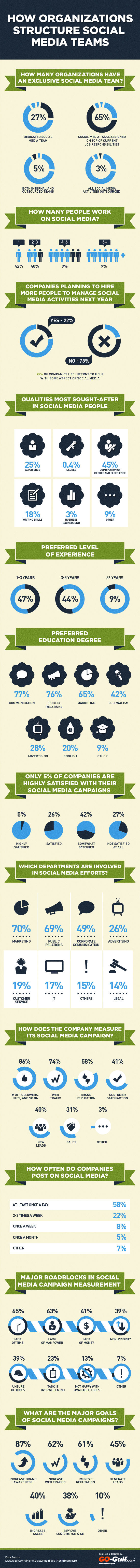 An infographic from Go-Gulf.com, featuring data from Ragan.com, is making the rounds and provides some insight into how brands are managing social media and the marketing aspects surrounding the social space. The information contained in the infographic shows that companies and brands understand the power of social media, with only 3% of those surveyed outsourcing their social marketing completely. In fact, 27% said they have a dedicated team to nothing but social media. The big eye-opener comes from the 65% that are assigning social media tasks on top of employees’ regular duties. Ask yourself this: if an employee has an entire job to do, and then is given the task of representing your brand in social media, how much time is that going to get?