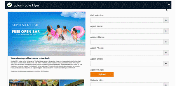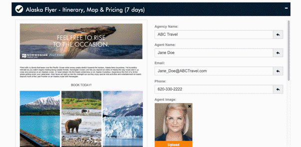 Dynamic Availability and Pricing Data: Integrate your availability, itinerary, amenities and pricing data dynamically into all of your marketing materials. Advisors will always have access to, and be sending the latest and most accurate information.